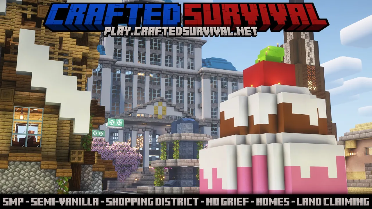 Join Crafted Survival for a new adventure! Experience semi-vanilla gameplay with land claim and no griefing. Explore and survive today!